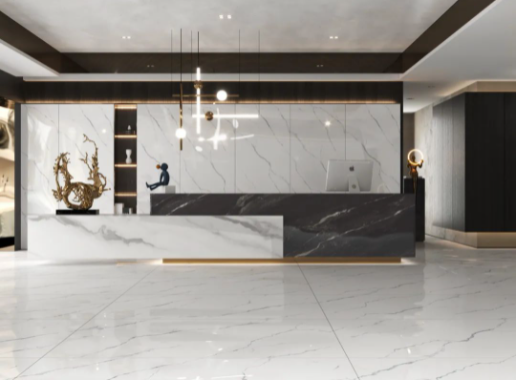 刪繁就簡的初晨白紋理,自然靈動,多面多紋的完美復刻,猶如大自然的神來之筆,極簡主義的裝飾空間,仿佛大雪下的視覺盛宴,高雅、恬靜、舒適之感彰顯無遺。