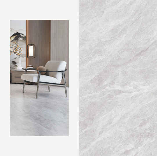 地面選用750x1500mm黃金規格的浪淘沙進行通鋪,簡潔的線條設計與不同材質交匯融合。不僅讓空間更具擴張力和延展力,清新淡雅的綠植作為點綴,猶如置身大自然,仿佛呼吸中亦有抵達心底的治愈。
