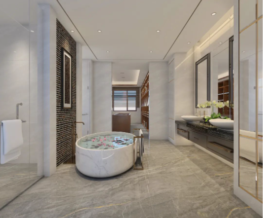 愜意的衛(wèi)浴間,是洗去一日疲勞的純粹之地。明亮的氛圍,簡潔的線條,搭配開羅灰低飽和度的配色,營造出大氣明亮的視覺氛圍,既特別又簡約,符合當代年輕人的審美。