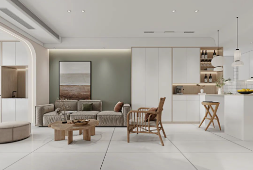地面可選用喜翡穩(wěn)步磚或可麗雅空氣凈化磚進(jìn)行通鋪,真實(shí)石材的自然光澤,糅合不同類(lèi)型的軟裝搭配,讓光線(xiàn)變得更加柔和。溫柔簡(jiǎn)約的質(zhì)感,保留了純粹的原生態(tài)肌理,簡(jiǎn)單卻不失格調(diào)。