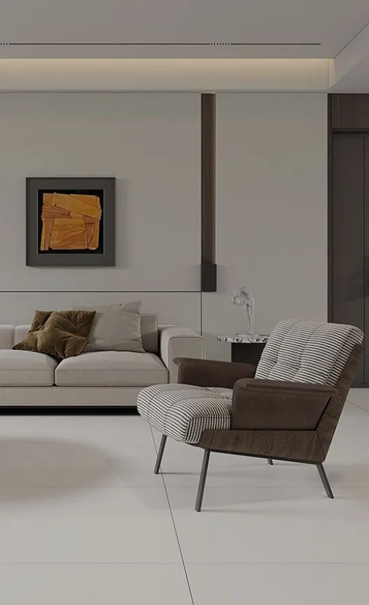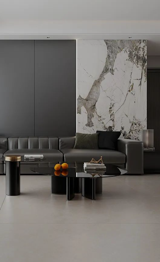 750X1500mm黃金規格,結合柔和暖灰延伸空間的視覺感同時,將客廳設計與美好自然組合,復刻原石經歷歲月后的真實肌理,為空間營造輕松治愈的舒適氛圍。